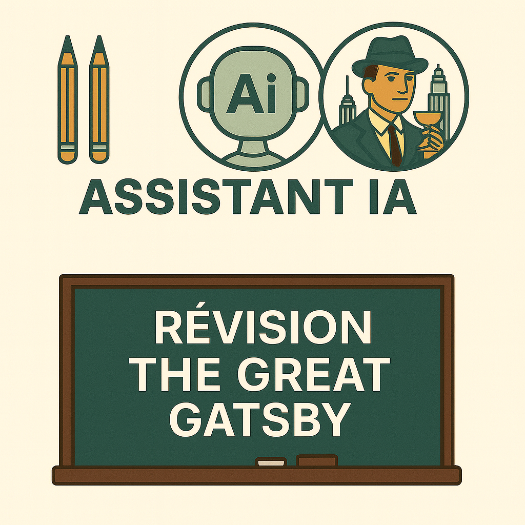 Assistant IA The Great Gatsby (et civilisation USA années 20) + cours offert (79 pages) + une vidéo de présentation de 14 minutes en anglais + un podcast introductif en français + un podcast introductif en anglais.